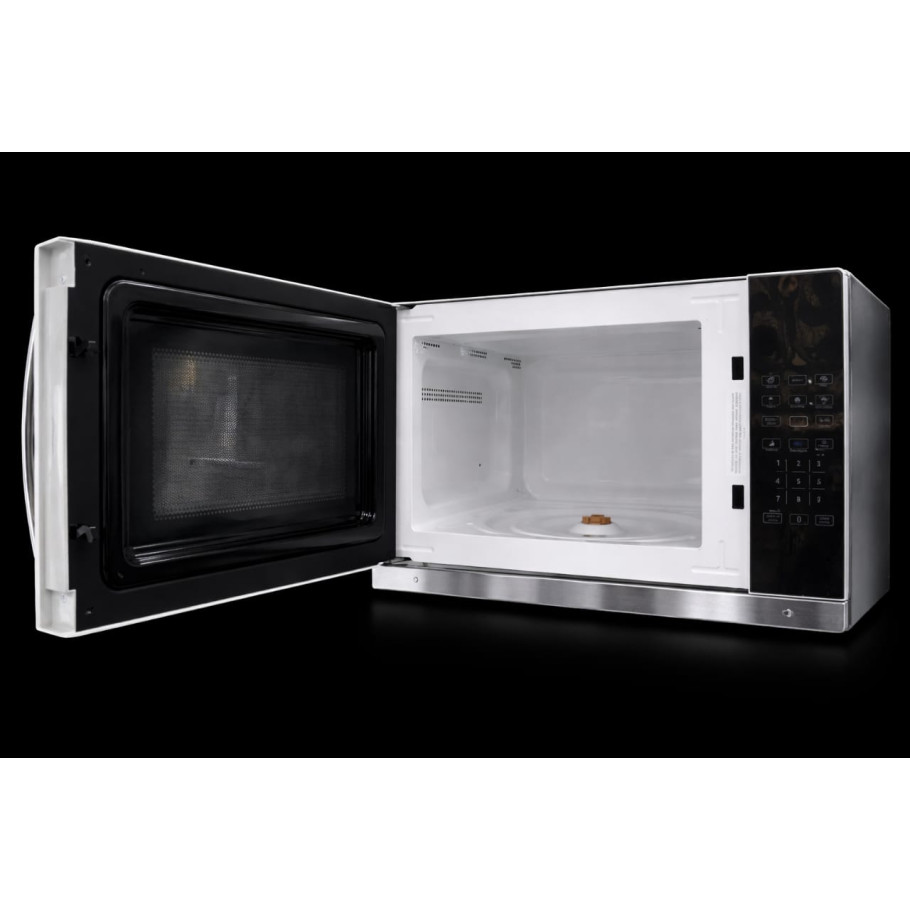 Ele possui acabamento sofisticado em inox espelhado na parte frontal e inferior, com porta de vidro reflexivo que traz um visual elegante e contemporâneo. O painel de controle é digital e sensível ao toque, com diversas funções pré-programadas que facilitam o preparo de alimentos no dia a dia.